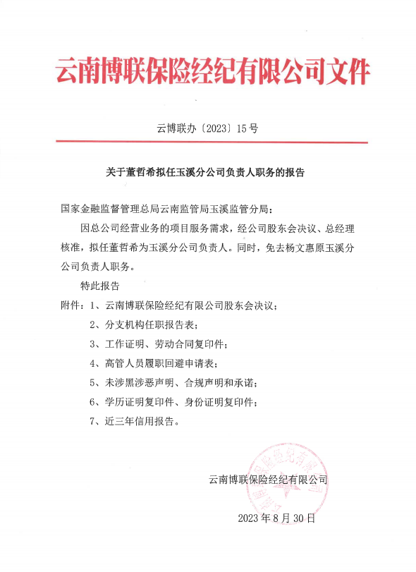 云南博聯(lián)保險經紀有限公司關于文