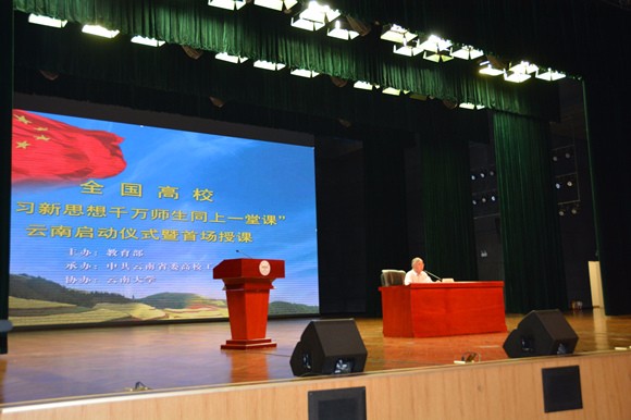 6月6日,全國高校"學(xué)習(xí)新思想千萬師生同上一堂課"云南啟動儀式暨首場授課在云南大學(xué)呈貢校區(qū)舉行。教育部督導(dǎo)聯(lián)絡(luò)員丁浩到現(xiàn)場指導(dǎo)工作。云南大學(xué)黨委副書記張昌山教授,中央馬克思主義理論研究和建設(shè)工程首席專家、云南民族大學(xué)教授張建國分別在啟動儀式上授課。