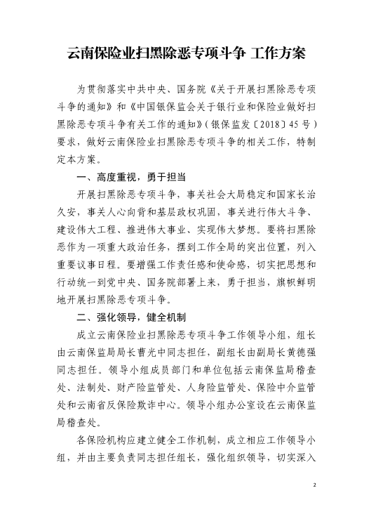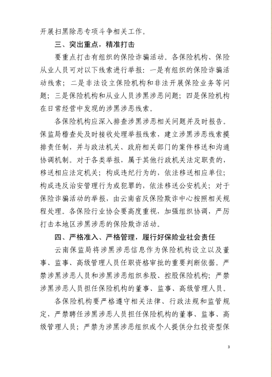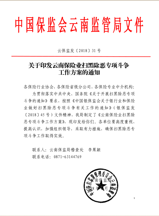 關(guān)于印發(fā)云南保險(xiǎn)業(yè)掃黑除惡專項(xiàng)斗爭工作方案的通知